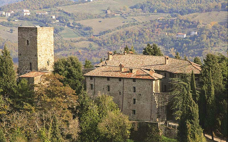 L’origine del Castello è testimoniata da molti documenti il più importante dei quali è un diploma dell’Imperatore Federico Barbarossa dell’8 novembre 1163. Per la sua posizione di cerniera tra Gubbio e Perugia, il Castello ricoprì un ruolo importante nelle vicende e nella storia del territorio dal XII al XIV secolo. Dal 1400 fu legato alle vicende del Ducato di Urbino; il 7 giugno 1422 vi nacque Federico da Montefeltro. Il restauro, effettuato tra il 1982 e il 1989, ha permesso il recupero del complesso di edifici medievali racchiuso nella cinta muraria.